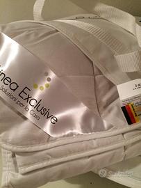 vendo questo prezioso coordinato letto da una piazza lenzuolo, federe, copripiumino, cuscino memory, coperta di altissima qualità (raso, cotone, seta) Colori beige e fumo, perciò ideale da maschio.Tutto in un coffanetto, ideale per fare un regalo utile e bello e prezioso. Il prezzo originale 970 dimostrabile