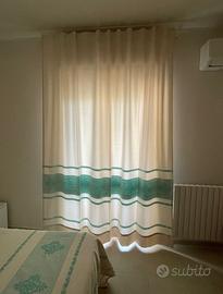 Copriletto matrimoniale , testata da letto e tenda realizzato in cotone al 100% .