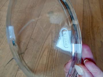 Coperchio in vetro per padella/tegame, con lo spazio centrale per inserire il pomello (non compreso), di circa 24 cm di diametro.