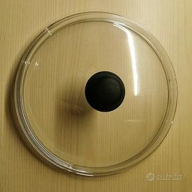 Coperchio tutto in vetro trasparente come in foto, per pentole o padelle di diametro 32cm, realizzato in Pyrex quindi resistente al calore. Molto robusto peso di 1,5Kg. Spedizione disponibile.