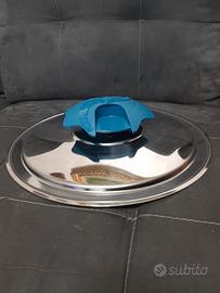 Coperchio Wonder Cooker Patent The Original ,acciaio INOX made in Italy. Il coperchio magico è progettato per cucinare e friggere in modo più sano, sicuro e senza schizzi e odori. Mantiene la temperatura dell'olio a 97 gradi per la frittura prevenendo la formazione di sostanze tossiche e cattivi odori. La frittura sarà più asciutta e più digeribile e l'olio può essere riutilizzabile.Il coperchio è quello grande ed è nuovo, mai usato. Diametro 35 cm. Prezzo 50