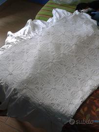 Vendo per inutilizzo coperta a uncinetto per letto matrimoniale, completamente realizzata a mano, con balza laterale in raso.