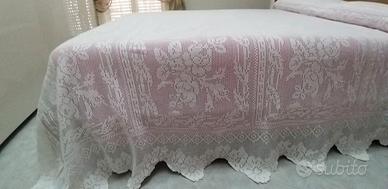 vendo pregiata coperta fatta interamente a mano all'uncinetto. Mai usata, é stata fatta da mia mamma abilissima artigiana per lavori all'uncinetto. é stata messa per la prima volta sul letto per fare le foto. il colore rosa che si vede sotto é dato dal lenzuolo. Fatta con filo Freccia (il miglior filo per questi lavori). Valore 3000€, la vendo a 1200€ trattabili
