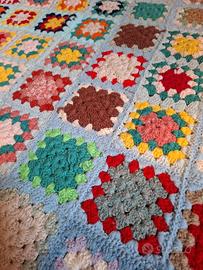 Coperta all'uncinetto fatta a mano in lana colorata 180x165cm