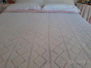 Coperta lavorata a mano all'uncinetto in cotone bianco. Dimensioni 275x195
