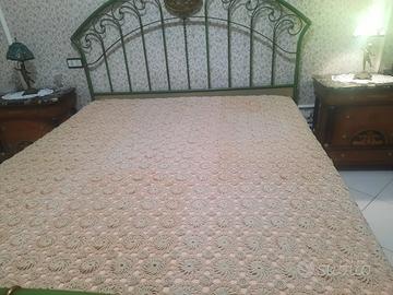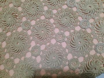 coperta artigianale all'uncinetto fatta a mano ... fiori e spirali singoli e poi uniti a formare il pezzo completo ..dimensioni 280x260