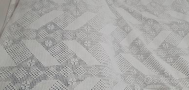 Vendo coperta/copriletto artigianale fatta a mano dalla nonna, realizzata all’uncinetto filet con elegante motivo geometrico a rombi effetto pizzo.