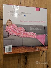coperta avvolgente a coda di pesce a squame rosa, realizzata inmorbida microfibra.
