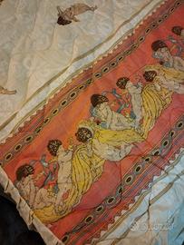 Molto decorativa coperta - copriletto matrimoniale trapuntato, ma non pesante, con un delicato disegno di angeli su sfondo beige e una fasce laterali rosa antico. Nuovo