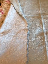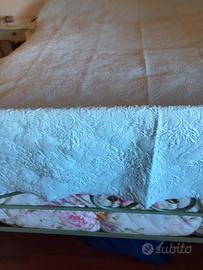 Coperta in cotone da una piazza di colore celeste con motivi di foglie in rilievo