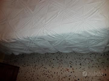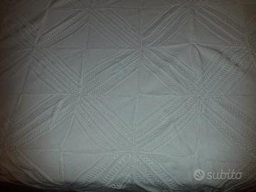 Vendo per inutilizzo, come nuova,mai utilizzata, questa bellissima coperta di cotone del colore bianco, lavorata a mano ai ferri,per letto matrimoniale,utile per la camera da letto, misura lunghezza di 2 metri e 15 cm.,larghezza di 2 metri e 25 cm.,in ottimo stato,anche per appassionati-e dello stile di epoca.