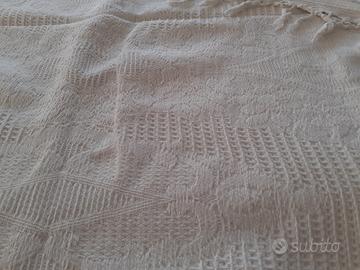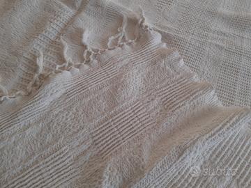 Coperta della nonna di cotone bianco con frangia composta su due lati. Vintage. Larga cm.250, lunga cm.265. Peso Kg.2,80