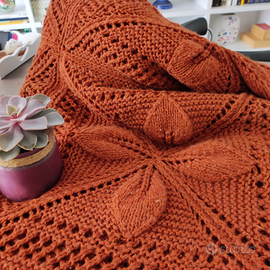 Coperta di lana fatta a mano in un bel colore caldo con motivo a rialzo