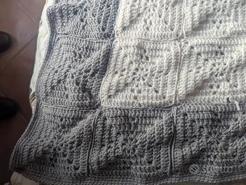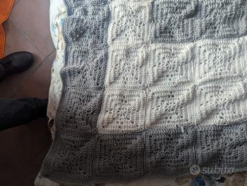 bellissima ed elegante nei colori coperta in lana fatta a mano all'uncinetto. Morbida e leggera, molto calda. Ideale per divano o letto singolo.