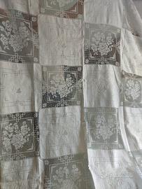 coperta meravigliosa in puro lino e pizzo interamente assemblata e ricamata a mano, da vedere e toccare x rendersi conto della rarità di questo capo, il prezzo è un vero affare