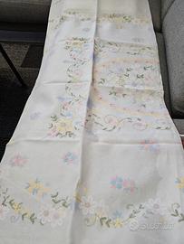 Preziosa coperta matrimoniale ricamata a mano in lino ed organza. Nuova.