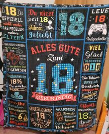 Coperta in pile con immagini del 18° compleanno. Calda e morbida, prodotto nuovo e imballato (8pz a disposizione) Misure 30x150