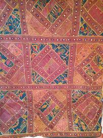 Coperta indiana patchwork sari, seta e cotone, fatta a mano, dimensione 205x226 Se necessario, posso spedire, ci mettiamo d'accordo