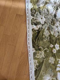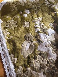 coperta matrimoniale corredo abruzzese in velluto verde e beige con rifiniture in cotone bianco piccole scuciture in un angolo utilizzati poco