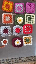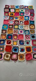 coperta realizzata completamente a mano con uncinetto . ogni mattonella diversa con applicazioni aggiuntive di fiorni misure 160 x 180 cm bordo nero