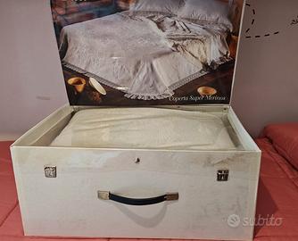 Coperta pregiata lana Merinos Sissi matrimoniale. Nuova mai usata, nel suo baule originale.