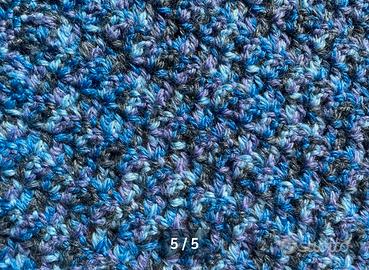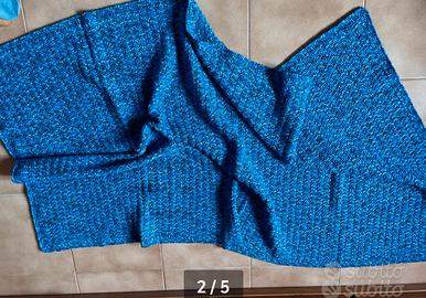 Coperta lana fatta interamente a mano ;a uncinetto, color bluette melange .Misure 175 per 95 . Nuovissima . Calda sia per divano, ginnocchia , che per letto.