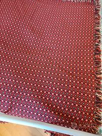 Coperta letto double face in lana artigianato abruzzese, cm 160 × cm 215 oltre frange (cm 5), peso circa 2,5 kg, colore rosso e nero