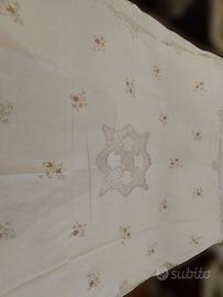 Lavorazione: L'intera coperta è impreziosita da ricami interamente eseguiti a mano da mani esperte.