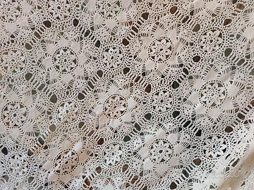 Coperta matrimoniale lavorata finemente con la tecnica dell'uncinetto,anni 50' perfettamente conservata in puro cotone,bianca un anno di lavoro, misure,mai utilizzata, perfettamente integra