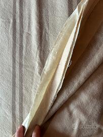 Il bordo in raso presenta diverse scuciture lungo il perimetro (visibili in foto).