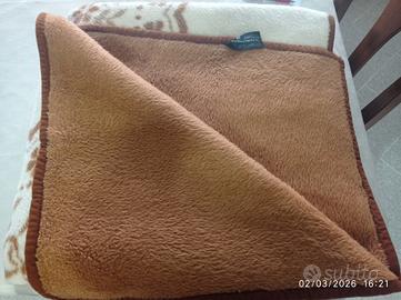 vendo coperta matrimoniale a due colori panna e cammello fatta di Mantas condizioni nuova. Marca Gonzolo Ferri Made in Spagna