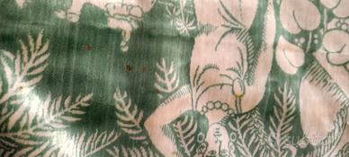 Bellissima coperta matrimoniale vintage in velluto di seta, pesante e caldissima, misure 236x262 cm, colori verde e oro, con frange ai bordi. Mai usata, presenta alcune piccole macchie di conservazione, per questo motivo il prezzo è stracciato e non trattabile.