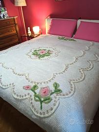 coperta matrimoniale ciniglia pesante "Arredamento Zucchi" , colore panna con ricami colorati come in foto, mai utilizzata. Preferibile ritiro a domicilio