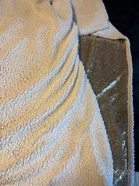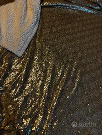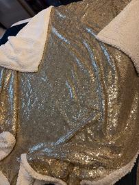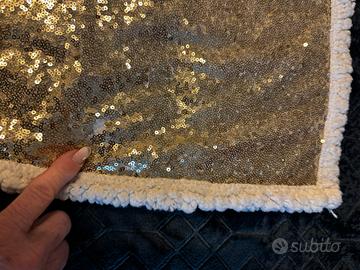 Coperta paillettes da una parte e dall’altra pail misure centimetri 175 per larghezza 130 piccolo difetto, dove c’è il dito nella foto mancano delle paillettes se non ve lo dico, non si nota neanche non è neanche 1 cm