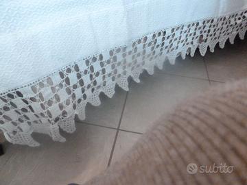 COPERTA MATRIMONIALE DI PIQUET BIANCA CON BORSO ALL'UNCINETTO