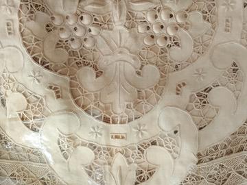 coperta matrimoniale parte di corredo anni 70 Puro lino con trama fiorentina ,nuovo imballato,articoli da collezione introvabile.