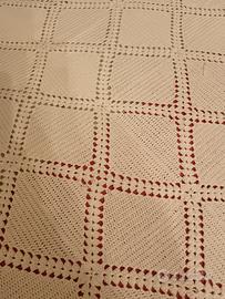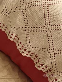 Coperta quadrata in filet waffle tassellata - Lavorata all'uncinetto. Misura adatta a letto matrimoniale
