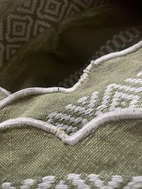 Copriletto credo in misto lino ma nn sono sicura in quanto nn conosco i tessuti, ricamo a mano come da foto del retro usata poco e tenuta molto bene, pulita senza macchie colore verdino dim 240 largh x 253 lungh. Unico difetto è che il ricamo del bordo si era un pò sfliacciato come da foto ed io l'ho sistemato cucendolo non sono una ricamatrice ma so cucire ho 71 anni, vedi foto.
