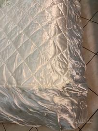 Coperta matrimoniale ricamata a mano su raso con sotto trapuntato e due cuscini ricamati. Mis. 250 per 2,70