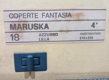 Somma, coperta matrimoniale in pura lana vergine, dimensioni cm. 210 x 250, 450 g/m2, fantasia Mruska, colore azzurro lilla, nuova, mai usata nella confezione originale. Per ritiro a mano Roma Colli Portuensi o consegna personale anche in provincia.