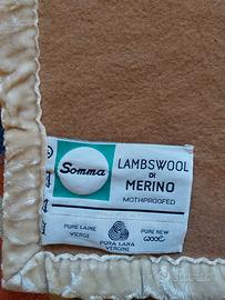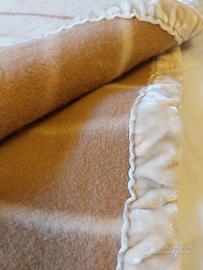 Coperta marca Somma come indicato nell'etichetta,morbidissima usata pochissimo.Per lettino singolo,misura 145 cm x 220 cm. È tutta perfetta incluso il bordino in velluto chiaro,senza imperfezioni. Due leggerissimi aloni che vengono via con un lavaggio. In pura lana vergine,merino,come dice etichetta. Da lavare a secco.