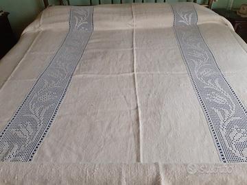 Coperta di panno antico con n. 2 tramezzi in pizzo lavorato a mano e cucito a mano e con bordo sempre in pizzo tel. 3890576831