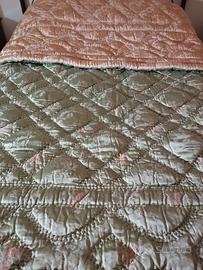 Coperta realizzata a mano , nuova mai usata, imbottitura di bambagia, rivestita in puro raso, bicolore