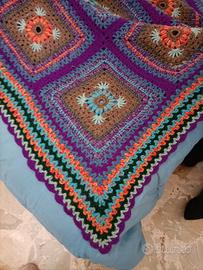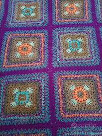 Coperta vintage,singola , di lana fatta a mano ad uncinetto, anche per una pizza e mezzo, perché abbastanza grande.