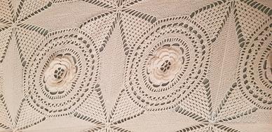 preziosa coperta in pizzo calabrese realizzata a mano in cotone. Misura 220x240 cm ed è realizzata cucendo assieme quadrati da 16 cm di lato. Risale alla metà del secolo scorso. mai usata.