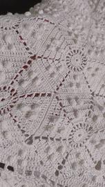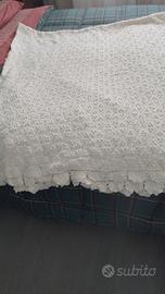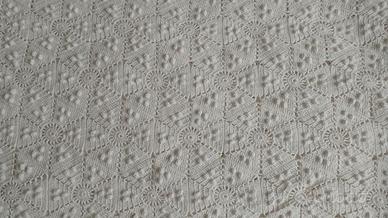 Coperta uncinetto matrimoniale fatta a mano dalla bisnonna, ricevuta in dote, mai usata, conservata sempre in armadio. Cotone 100%, bianca.