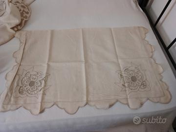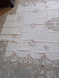Vendo coperte per lettino a intaglio con cuscini,si possono realizzare anche delle tende.Usate solo una volta,no spedizione.€150 la coppia , sono in lino.