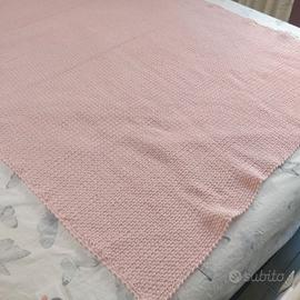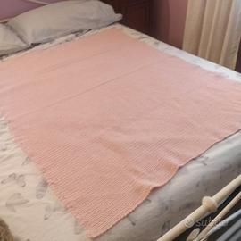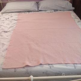 Bellissima copertina rosa fatta a mano all' uncinetto con filati di qualita'. Filati Canetta 80% lana. Misura: 130 x 105 cm. Per intenditori
