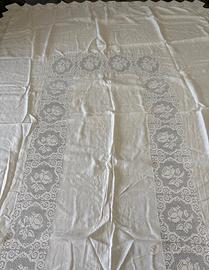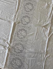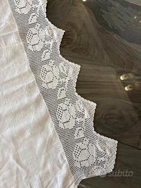 Copertina da lettino singolo puro Lino ricamato a mano in uncinetto fatto dalla mia cara Nonna almeno 40 anni fà. Si può utilizzare pure per creare una tendina. (N.B. nessuna macchia mai utilizzato).