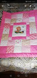 Vendo coperte in patchwork interamente trapuntato a mano misura lettino e carrozzina con ricamo centrale a punto croce fatto interamente a mano a partire da 40 euro
